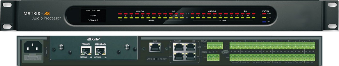 SVS Audiotechnik Matrix-A8 - матричный процессор управления аудио и трансляционными системами. Является сердцем системы передачи и управления музыкального контента на коммерческих инсталляциях. Простой в эксплуатации и установке, благодаря понятному графическому интерфейсу с поддержкой множества различных пультов управления для широкого спектра применения. Базовая система устройства обеспечивает в общей сложности 12 входов и 12 выходов без опции DANTE. Опциональная карта DANTE расширяет до 20 входов и 20 выходов. Программное обеспечение интуитивное понятное, что упрощает настройку при инсталляции и дальнейшей эксплуатации системы.