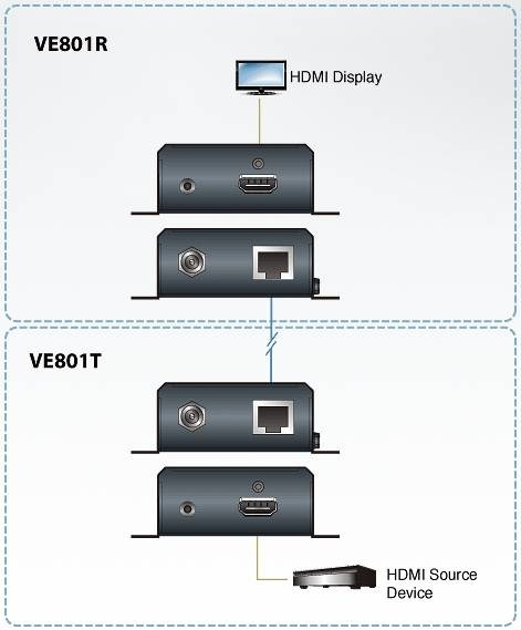 | Выход видео | VE801R: 1 x HDMI: HDMI Type А female |