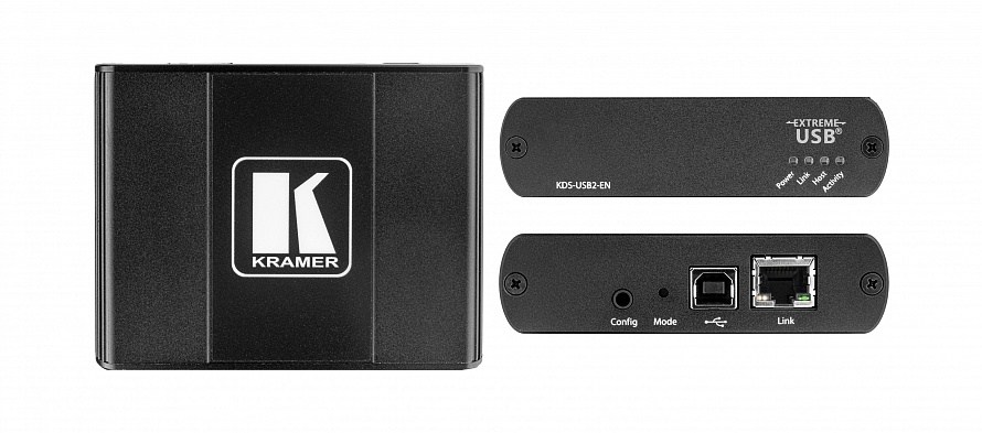 Kramer KDS-USB2 - комплект, состоящий из кодера и декодера, которые предназначены для удаленного подключения периферийных USB-устройств, (таких как мышь, клавиатура, дисплей, видеокамера, устройство мобильной связи, медиаплеер, накопитель на жестком диске и т.д.), к хост-компьютеру по сети Ethernet. Кодер KDS-USB2 подключается к хост-компьютеру, а декодер KDS-USB2 — к удаленным USB-устройствам, обеспечивая связь между хост-компьютером и удаленными периферийными устройствами. 1 кодер KDS-USB2-EN и 1 декодер KDS-USB2-DEC, входящие в комплект KDS-USB2, обеспечивают удлинение USB-интерфейса для максимум четырех устройств, подключаемых к декодеру. Однако, имеется возможность расширения системы путем добавления до 6 дополнительных декодеров KDS-USB2-DEC, (приобретаемых отдельно), способных работать с одним кодером KDS-USB2-EN. При помощи системы на основе KDS-USB2 можно, например, подключить несколько удаленных USB-камер, находящихся на разных объектах, к центральному компьютеру, или подключить к ПК по локальной сети несколько удаленных пользователей для совместной работы. Возможности системы можно значительно расширить при помощи облачной платформы управления Kramer Control, позволяющей удаленно управлять множеством устройств KDS-USB2.