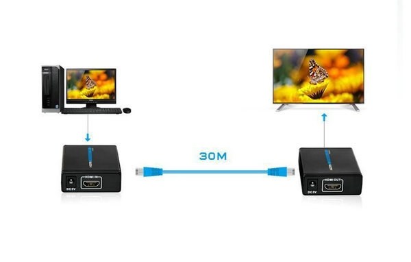 Передает HDMI-сигнал на расстояние до 60м (1080P) посредством одного кабеля CAT6 (и выше).