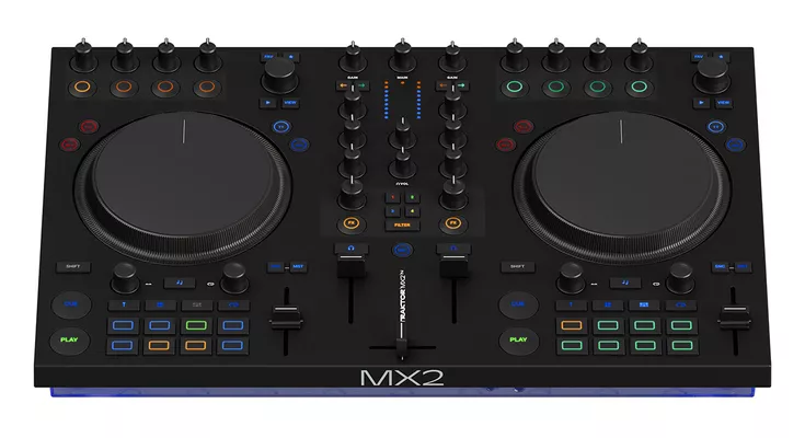 Диджей-контроллер Traktor Kontrol MX2 — это творческая станция для диджеев, объединяющая профессиональные возможности и портативный формат. Два канала с фейдерами, кроссфейдером и 3-полосным эквалайзером обеспечивают классический инструментарий для сведения, а тактильные джоги с режимами Turntable/Jog и 16 настраиваемыми пэдами открывают пространство для экспрессии. Визуальная подсветка элементов управления и интеллектуальная световая индикация помогают ориентироваться в любых условиях — от тёмного клуба до уличной вечеринки.