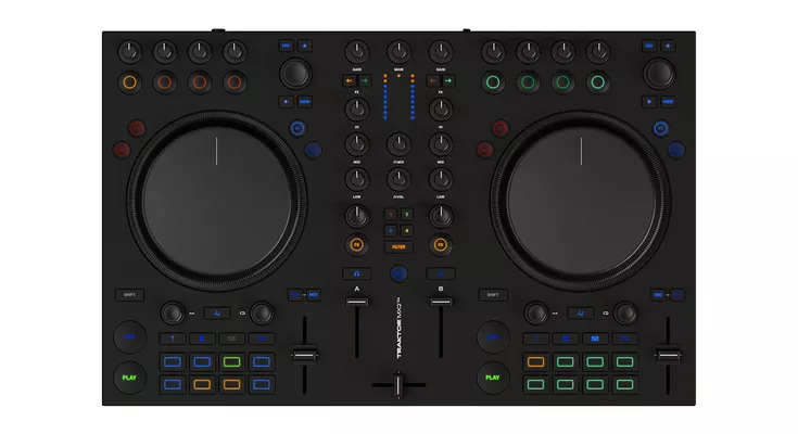 Native Instruments Traktor MX2 - 2-канальный DJ-контроллер с 16 настраиваемыми пэдами, тактильными джог-вилами, встроенными эффектами и полной версией Traktor Pro 4.