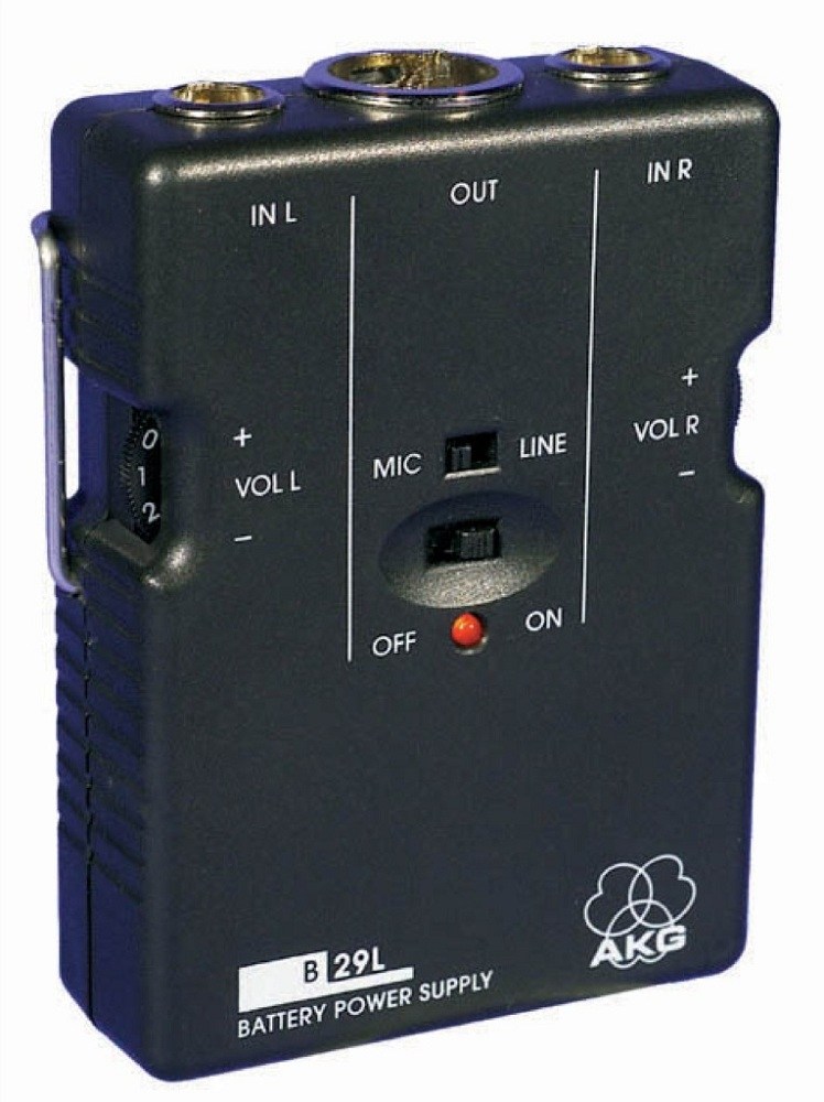 Akg b29l представляет собой блок фантомного питания для конденсаторных микрофонов, имеющий встроенный 2-х канальный микшерный пульт, входные разъемы мини XLR (3-pin), выход XLR(3-pin) и поканальный регулятор уровня.