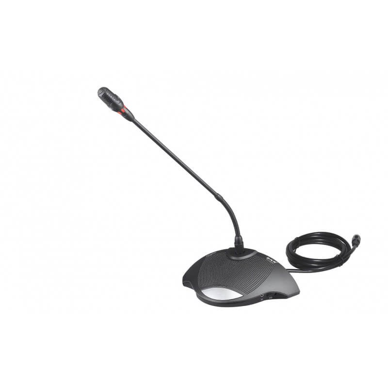 Встроенный Hi-Fi динамик, позволяет проигрывать фоновую музыку. Микрофон питается от управляющего пульта, рабочее напряжение – 9 В. Два выходных разъема для стереозвука 3,5 мм; Разъемы можно использовать, для подключения гарнитуры вместо микрофона и динамика. Поддерживается и регулировка громкости. Гибкая стойка микрофона для конференций настраивается, принимая любое нужное положение. Пульты подключаются к блоку в виде цепочки, один через другой, что упрощает установку и обслуживание системы. Микрофонный пульт поставляется с 2,1-метровым, 8-жильным кабелем для удобного подключения микрофона.