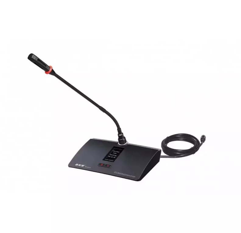 CleverMic BKR BLS-4511C - новая линейка микрофонов от фирмы BKR получила стильный дизайн и ряд преимуществ перед конкурентами. Функция автоотслеживания подключения видеокамеры. Микрофонный пульт с кнопкой включения и индикатором состояния. Пластиковый корпус микрофона. ЖК экран 128*64 точек, отображающий режим работы устройства. Кабель для подключения микрофона входит в комплект поставки. 8-канальный Т-образный разъем для подключения микрофонов. Направленный, с подавлением эхо и шума. Функция включения или отключения необходимого числа делегатских пультов с пульта председателя. Пульт председателя может быть установлен в любом месте. Функции ограничения речи не распространяются на пульт председателя Количество пультов председателя неограниченно.
