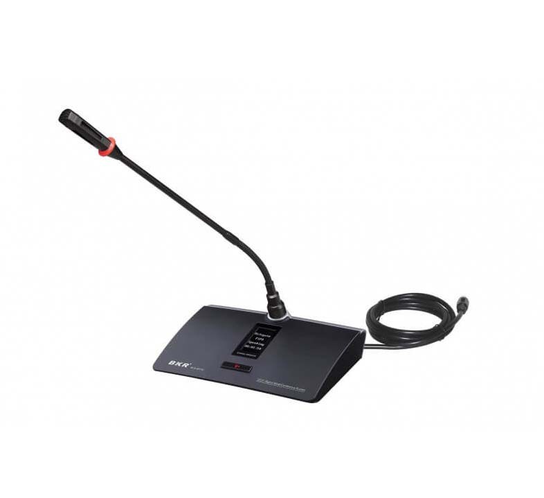 CleverMic BKR BLS-4511D - новая серия микрофоном от фирмы BKR получила органичный дизайн и ряд преимуществ перед конкурентами. Функция автоматического отслеживания подключения видеокамеры. Микрофонный пульт с кнопкой включения и индикатором состояния. Пластиковый корпус микрофона. ЖК экран размером 128×64, отображающий режим работы устройства. Кабель для подключения микрофона входит в комплект поставки. 8-канальный Т-образный разъем для подключения микрофонов. Направленный, с подавлением эхо и шума. Функция включения или отключения необходимого числа делегатских пультов с пульта председателя. Пульт председателя может быть установлен где угодно.
