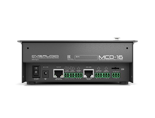 CVGaudio MCD-16 - профессиональная микрофонная консоль для многозонных систем коммерческого звука на базе DSP процессоров CVGAUDIO ZONER pro и MDSP. Имеет восемь кнопок для активации зон / группы зон для подачи голосового или предзаписанного сообщения. При этом у каждой кнопки предусмотрено два регистра для управления 16 зонами оповещения.