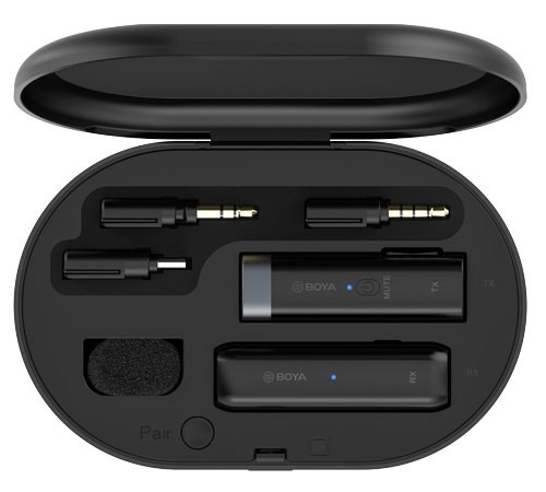 Boya BY-WM3U - 2,4 ГГц беспроводная микрофонная система и комплексное решение для максимально чёткой записи звука. Он совместим с большинством смартфонов, планшетов, DSLR камер, любительских видеокамер, ПК и т. д. Чехол для зарядки может заряжать передатчики и приёмники в любом месте, что позволяет продлить время их работы, а он сам заряжается через порт USB-C. Имея лёгкий портативный корпус, BY-WM3 предназначен для видеооператоров и видеоблогеров.