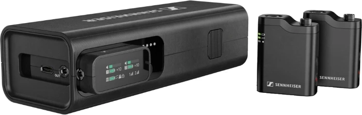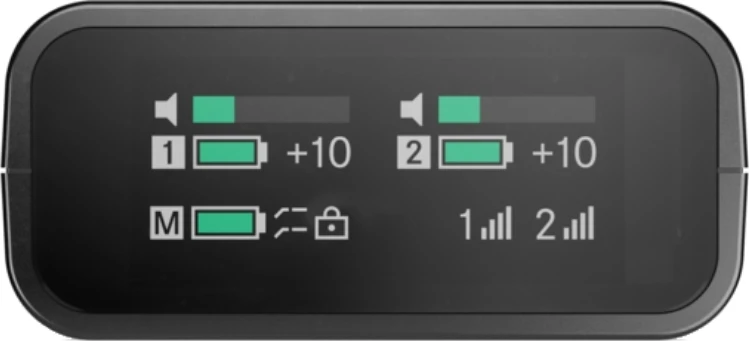 | Комплектация | 2 передатчика с микрофонами 1 приёмник Зарядная станция (используется как ручной микрофон) Адаптер «холодный башмак», USB-C и Lightning кабели Магниты и клипсы для крепления Чехол для хранения |