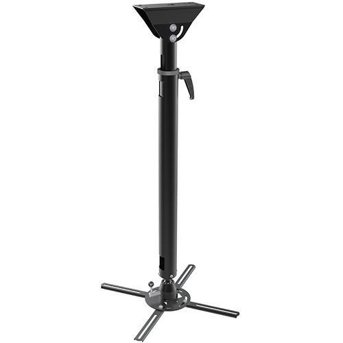 Потолочный кронштейн для проектора с возможностью крепления на наклонный потолок, max 30 кг, расстояние от потолка: 820-1200 мм, размах "краба": 180-400 мм, регулировка наклона (-20/+20 градусов в любую сторону) и поворота (360 градусов) проектора (шаровый шарнир), скрытая укладка кабелей в штанге, цвет: черный.