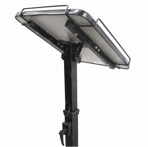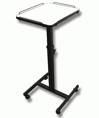 Столик (полка) легко регулируется по высоте и обладает возможностью наклона, делая проецирование более гибким. Благодаря данной функции, можно выбрать требуемый угол наклона исходя из расположения экрана.