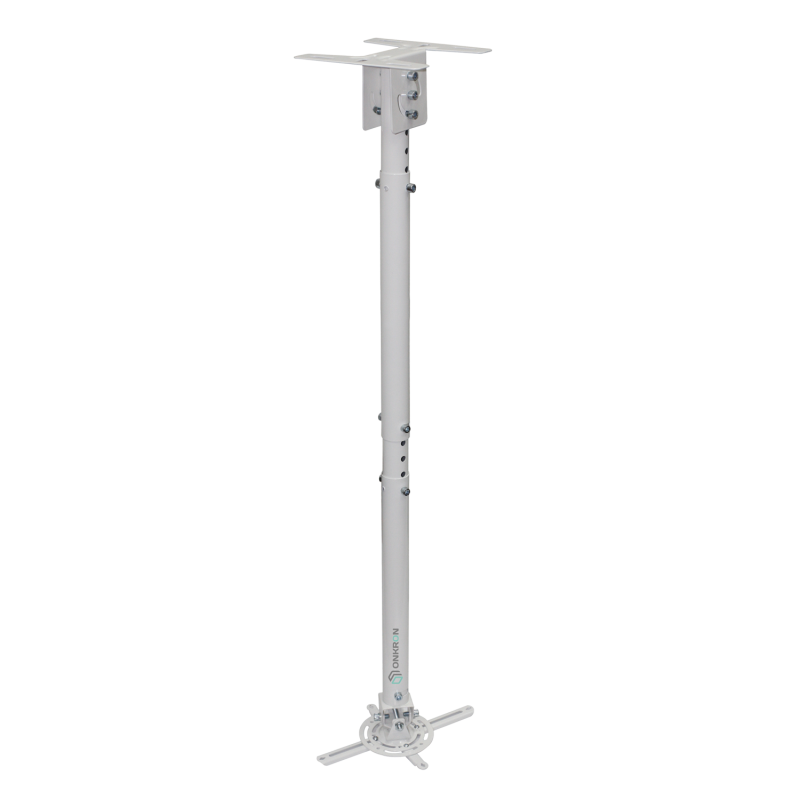 OnKron K4A - потолочный кронштейн для крепления проектора белого цвета. Расстояние от потолка от 950 мм до 1500 мм Разлёт крепежных отверстий до 351 мм.