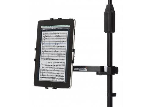 Bespeco TAB100 - держатель для планшетов с креплением для микрофонной стойки от итальянского производителя Bespeco. Подходит для любых планшетов с экраном от 8 до 10.1 дюймов, также подходит для iPad /2/3, Galaxy TAB/2/3, Galaxy Note 10.1. Угол наклона можно регулировать. Держатель имеет специальное покрытие и не испортит (не поцарапает) внешний вид устройства.