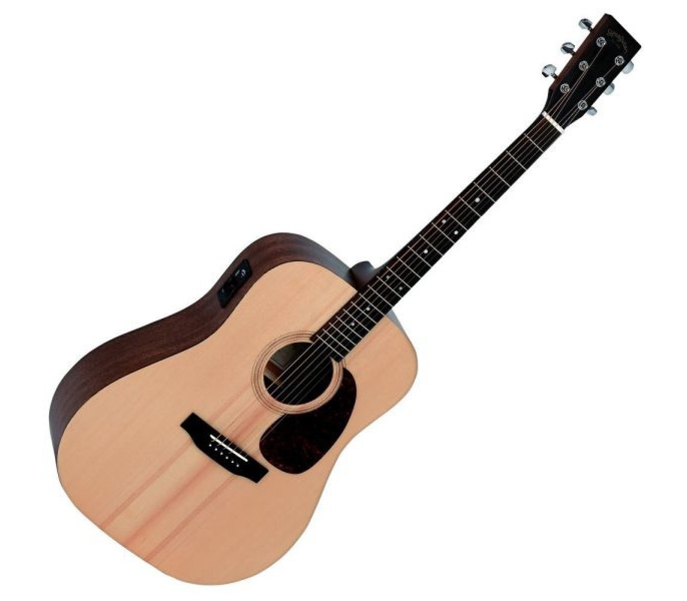 Sigma Guitars DME+ - электроакустическая гитара Sigma DME способна вас по настоящему удивить - она сочетает в себе звонкое, яркое, насыщенное звучание и весьма низкую стоимость, чем вполне может составить конкуренцию более дорогим и именитым инструментам. Модель выполнена в корпусе дредноут с верхней декой из цельной ситхинской ели. Нижняя дека, обечайка и гриф сделаны из махагони, а накладка на гриф из микарты. Несмотря на тщательно подобранную добротную древесину, гитара имеет достаточно небольшой вес, поэтому она отлично подойдет и для детей. Удобный гриф выполнен очень качественно, поэтому не возникает неприятных призвуков и дребезжания. Он прекрасно лежит в руке и вызывает комфортные ощущения даже у тех, кто привык к более тонкому грифу электрогитары.