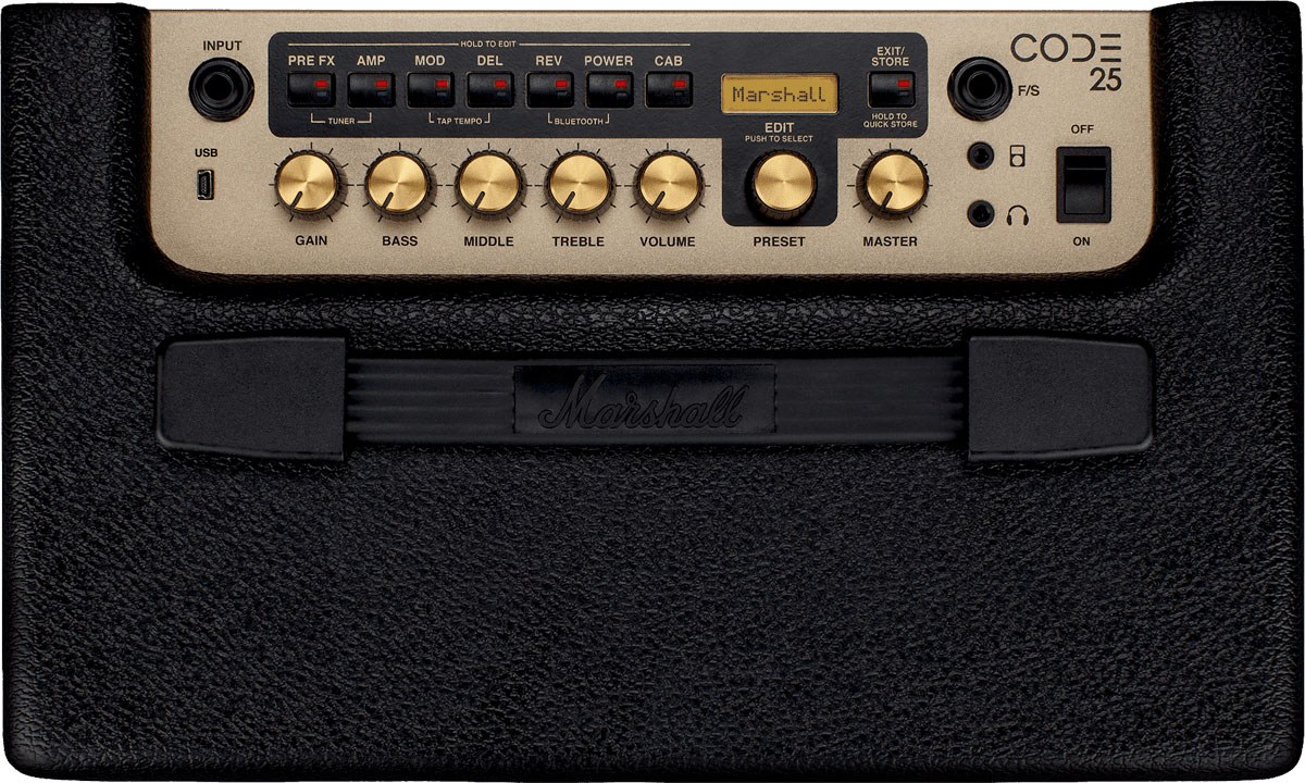 Marshall CODE 25 - полностью программируемый, сочетающий в себе подлинное моделирующее звучание классических и современных усилителей Marshall, дополненное эффектами профессионального качества, комбоусилитель.