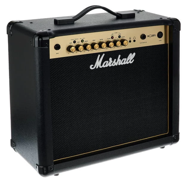 Marshall MG30GFX - четырехканальный транзисторный комбоусилитель мощностью 30 Вт со встроенным процессором эффектов и гибкой системой настройки звучания. В комбике один 10-дюймовый динамик Custom, который безупречно передает весь спектр частот.