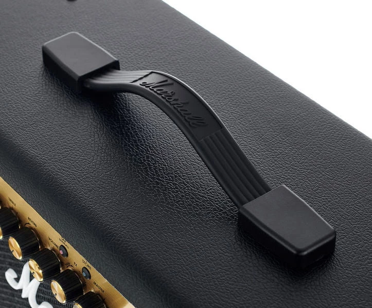 Помимо основного входа на передней панели расположен выход Headphones out, который позволяет играть в наушниках, не беспокоя соседей. Кроме того, вы можете использовать этот выход для записи, что делает комбоусилитель идеальным не только для концертов и занятий. Также тут находится вход для футсвитча (Marshall PEDL90008 Stompware, продается отдельно) и Aux In для подключения плейера, смартфона или другого девайса.