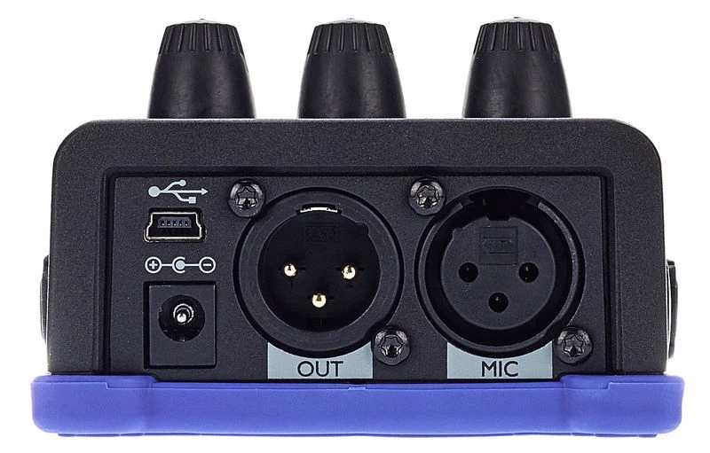Педаль снабжена микрофонным предусилителем с низким уровнем шума и качественными АЦ/ЦА преобразователями. Здесь есть микрофонные вход и выход XLR и гитарные вход и выход 1/4".