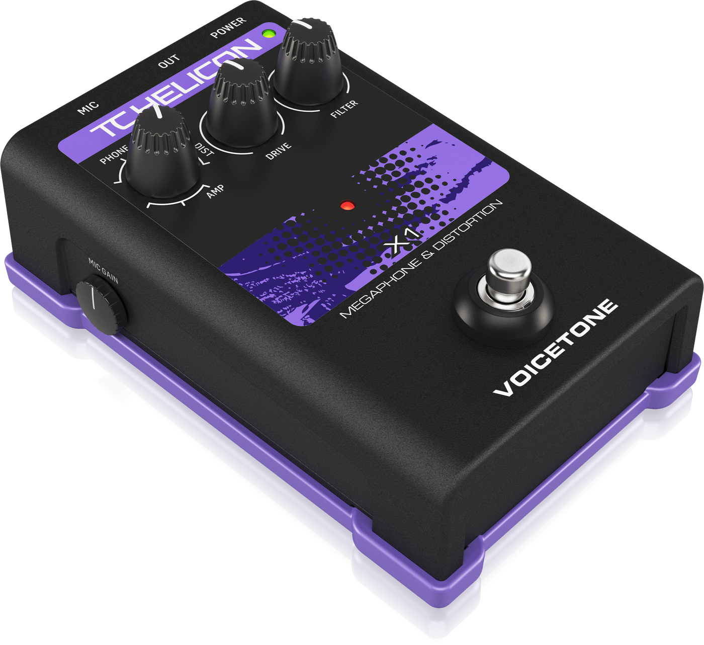 TC Helicon VoiceTone X1 - вокальная педаль эффектов. Данная компактная педаль сможет заметно разнообразить звучание вашего голоса на live выступлениях. С ее помощью вы добьетесь эффекта, словно вы поете через мегафон, перегруженный усилитель, телефон, либо иное оборудование, искажающее сигнал. Если вы хотели добиться звучания как в композициях Waiting for the Worms (Pink Floyd) или Feeling Good (Muse) - эта педаль определенно для вас!