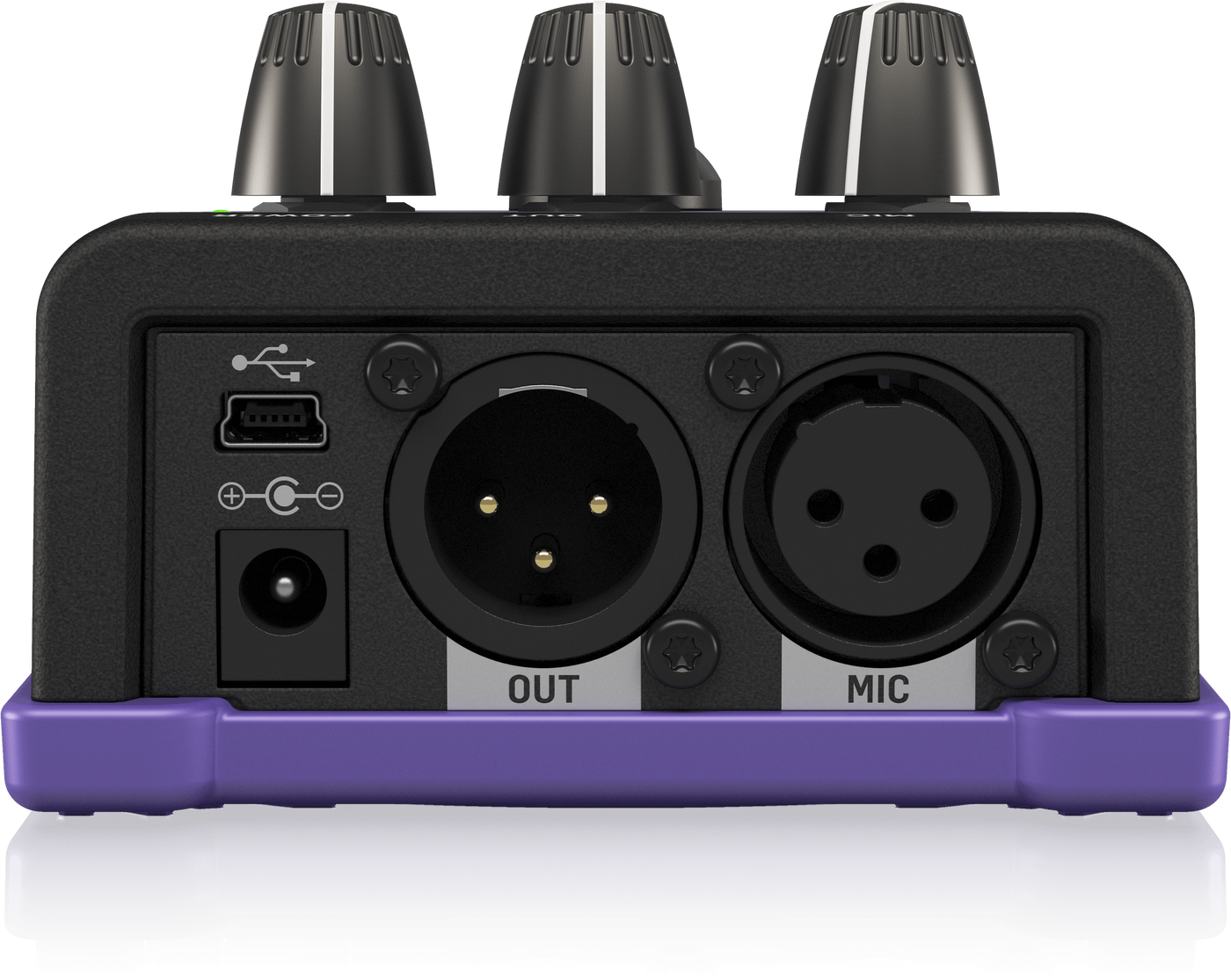 Подключение к педали осуществляется через стандартные 3-ех контактные разъемы XLR (вход и выход). Уровень входной чувствительности настраивается расположенной сбоку ручкой Gain. Здесь реализованно постоянно активное фантомное питание +12В, позволяющее использовать в работе конденсаторные микрофоны. Однако, в связи с этим, не рекомендуется использовать VoiceTone X1 с ленточными микрофонами во избежание их повреждения. Важно отметить, что педаль совместима с микрофоном-контроллером MP-75, который позволяет удаленно включать/отключать эффект. Эта функция активируется расположенной сбоку кнопкой Mic Control. Предусмотренный здесь разъем Mini USB позволит производить обновление прошивки устройства У нее прочный литой металлический корпус, который без труда выдержит активную ежедневную эксплуатацию.