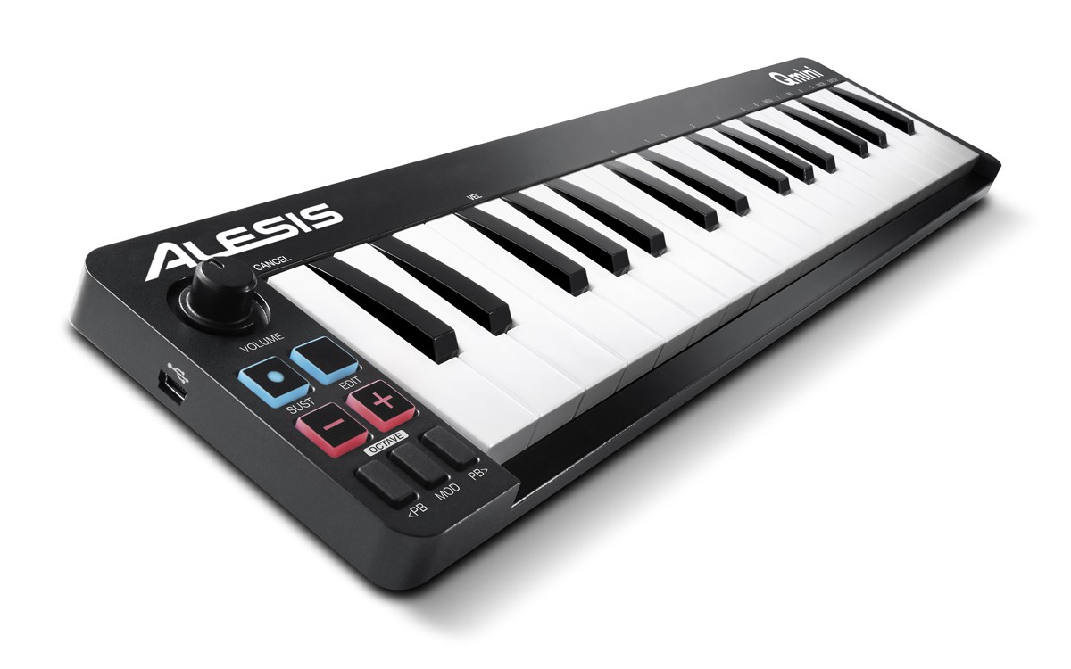 Здесь имеются 32 чувствительные к скорости нажатия мини клавиши, которые несмотря на свои размеры позволяют исполнять с широким динамическим диапазоном. Также на лицевой панели предусмотрены ручка громкости, кнопки высоты тона, кнопка модуляции, кнопка Sustain и кнопка Edit, открывающая доступ к дополнительным функциям, вроде выбора MIDI канала или транспонирования строя в полутонах. Подключается через порт Mini USB.