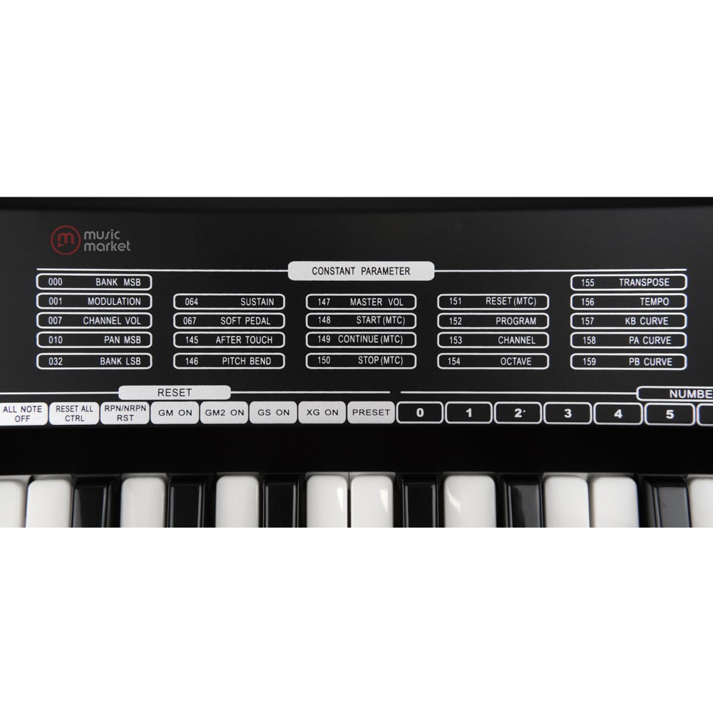 У клавиатуры 61 клавиши, которые чувствительны к скорости нажатия, USB разъем для подключения к ПК и MIDI выход, который позволит подключить клавиатуру практически к любому MIDI-устройству, в том числе к звуковым и программным модулям. Также имеюся 2 разъема для подключения педалей Soft и Sustain.