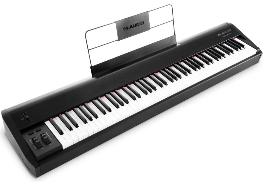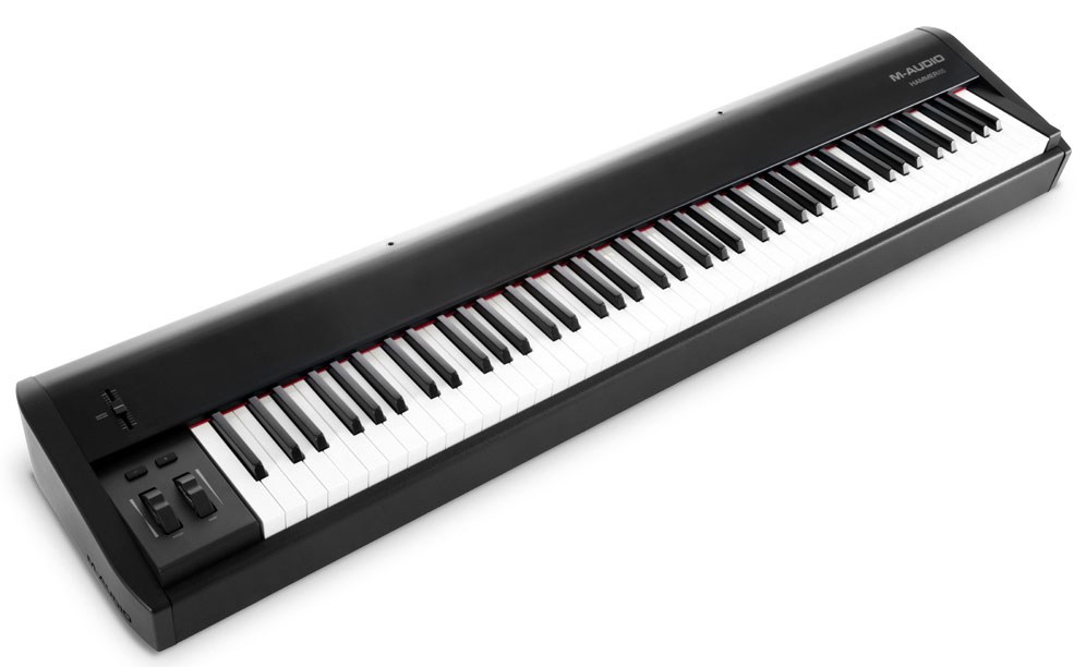M-Audio Hammer 88 - базовая MIDI-клавиатура, которая, несмотря на небольшое количество встроенных функций, является полноценным инструментом для профессиональной студийной работы. Одной из главных особенностей данной модели является ее клавиатура. Здесь реализована полноразмерная клавиатура на 88 клавиш с молоточковой механикой, которая чувствительна к скорости и силе нажатия. Она обеспечивает очень приятные ощущения, схожие с игрой на акустическом фортепиано, и не уступает многим цифровым пианино.