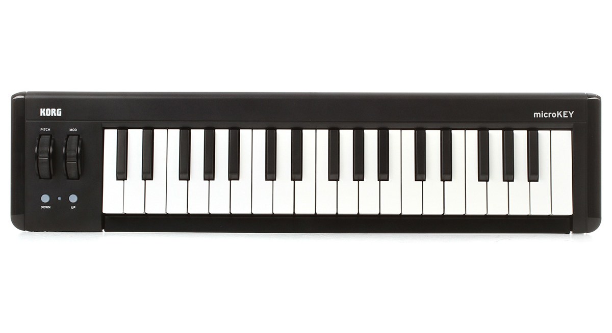 Korg microKEY 37 Mk2 – класс-совместимая USB MIDI-клавиатура на 37 клавиш с колесами питча и модуляции и входом для демпферной педали.
