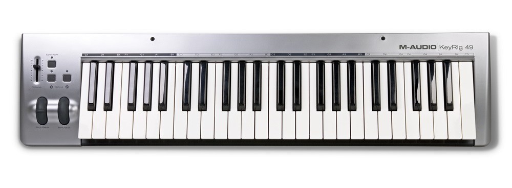 M-Audio KeyRig 49 бюджетная модель миди-клавиатуры для новичков с синтезаторной механикой и поддержкой USB-интерфейса.