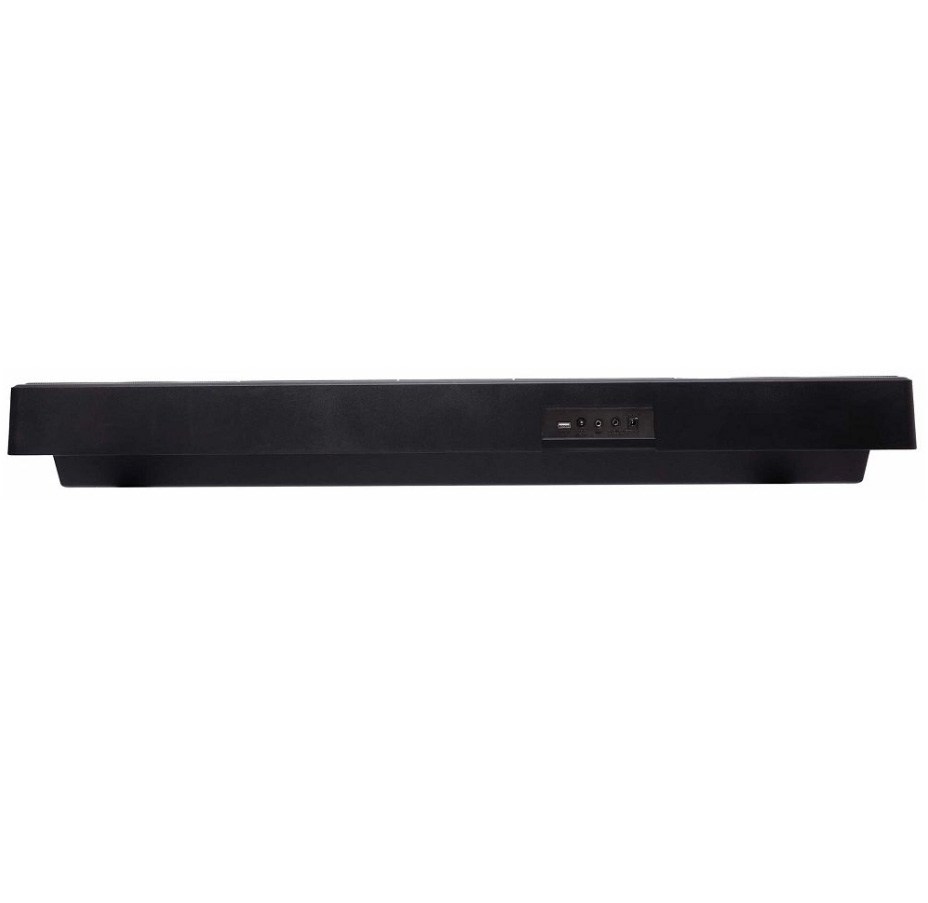 Помимо USB порта и входа Aux, на задней панели расположен вход для микрофона, благодаря чему вы сможете исполнять полноценные песни, а также аудиовыход, позволяющий подключить внешнюю акустическую систему или наушники для бесшумных занятий.
