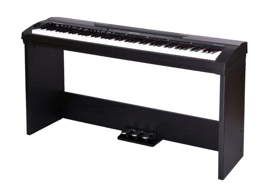В комплект поставки входит сетевой адаптер, пюпитр, мануал на русском языке, а также деревянная стойка с блоком из трех педалей, которая позволит установить инструмент на оптимальной высоте и отлично впишется в любой интерьер.