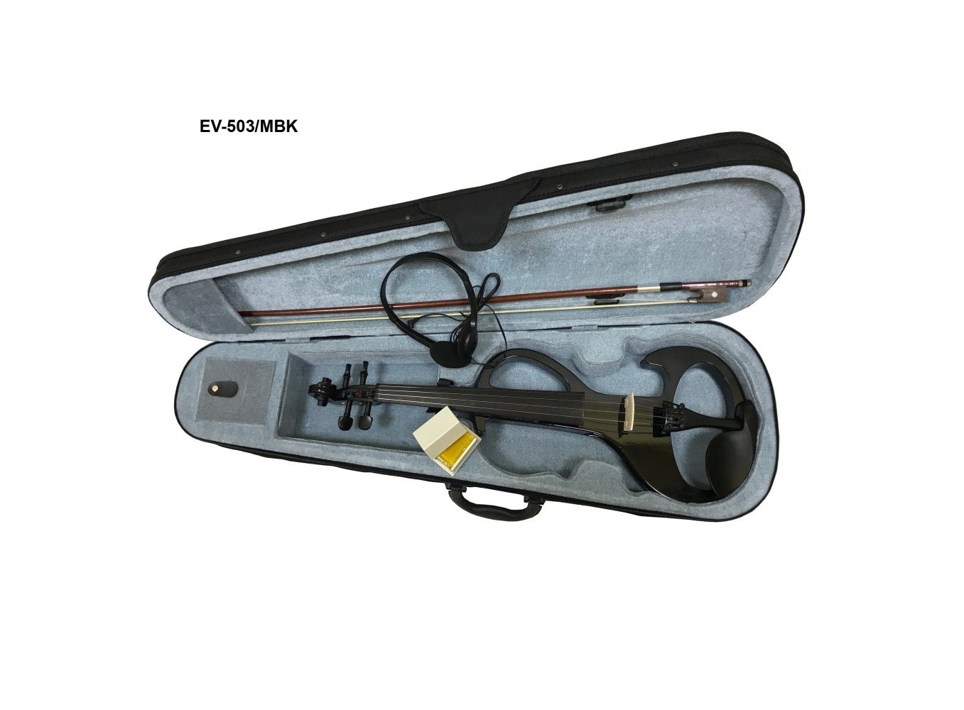 В комплекте поставки с EV-503 идет надежный футляр с ремнем, смычок, канифоль, батарейка 9 В, провод для подключения и наушники для тихих занятий.