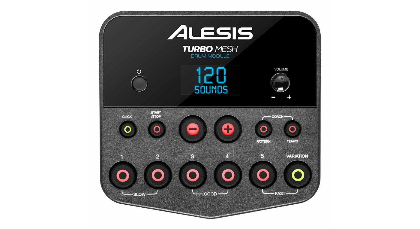 Alesis Turbo Mesh Kit - электронная барабанная установка, в которую входят малый барабан, 3 тома, хай-хэт, райд, крэш, педали бочки и хай-хэта, барабанный модуль Turbo, стойку и аксессуары.