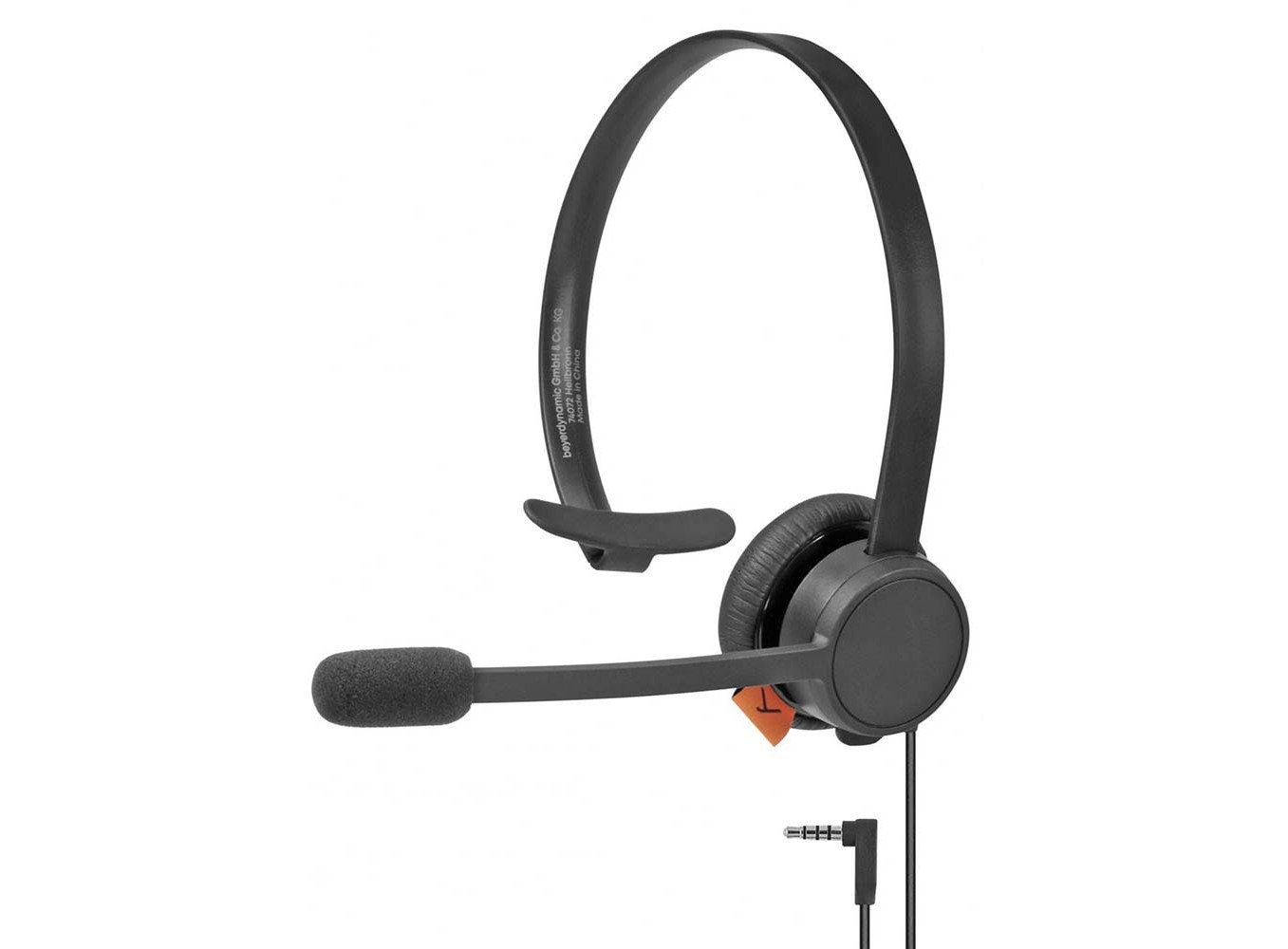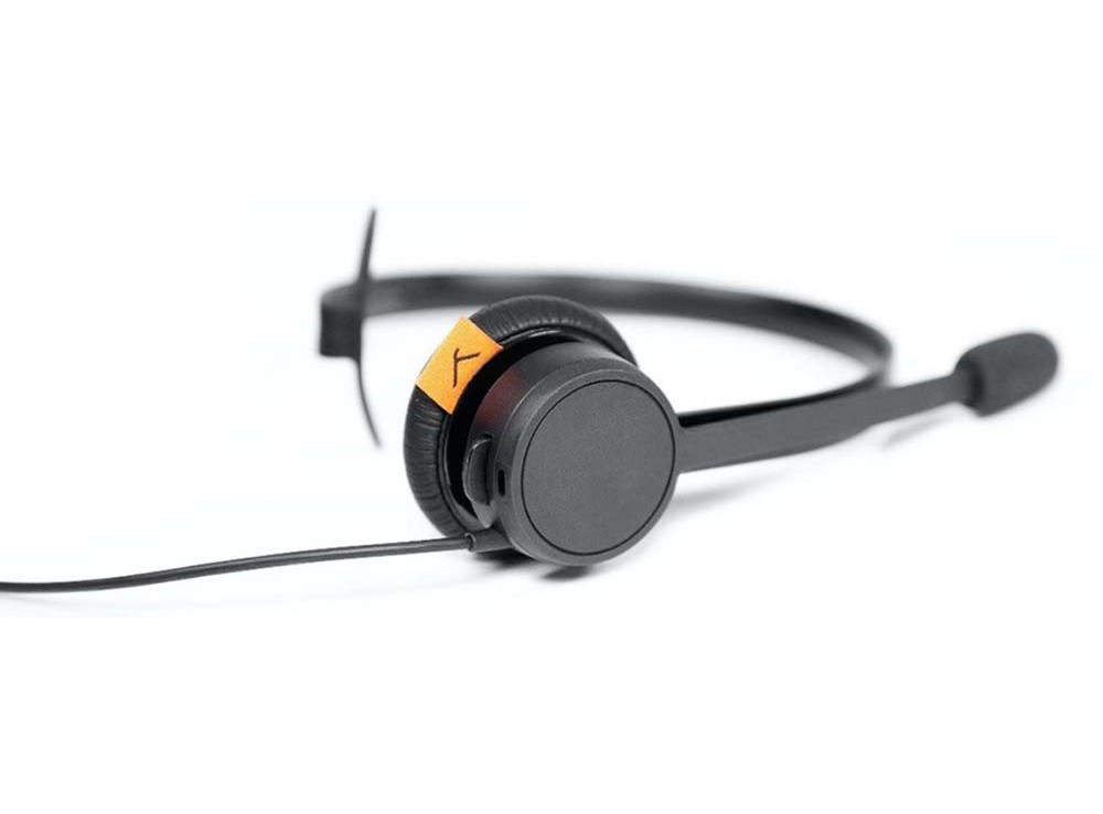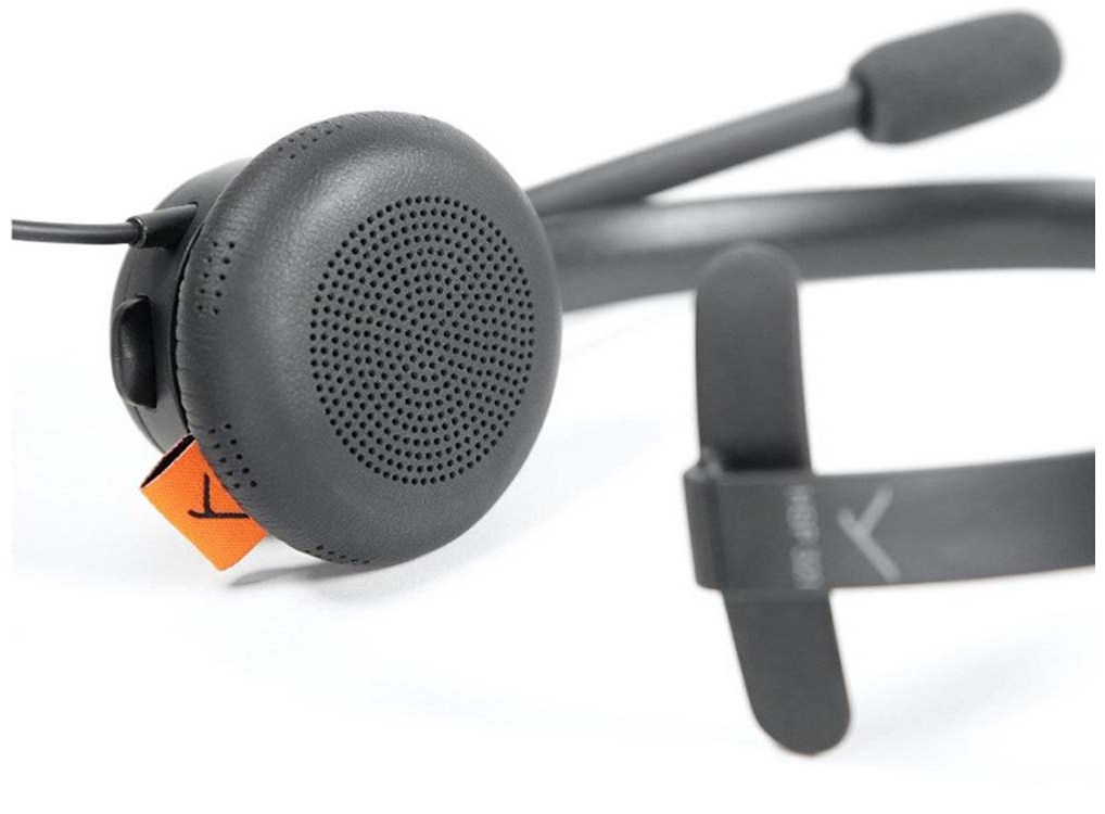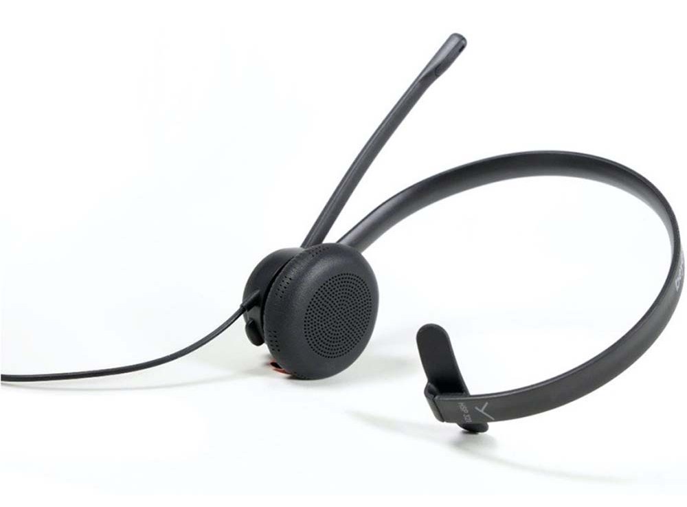 Оголовье гарнитуры комфортно при использовании и может регулироваться индивидуально под любые нужды. На оголовье расположен один наушник и микрофон. Здесь используется не электретный микрофон с шумоподавлением, разработанный специально для передачи голоса по телефонной связи или VOIP-телефонии. Микрофон смонтирован на вращающейся штанге. Такое решение позволяет надевать гарнитуру чтобы микрофон был по правую или левую сторону. Амбушюра наушника выполнена из полиуретана.