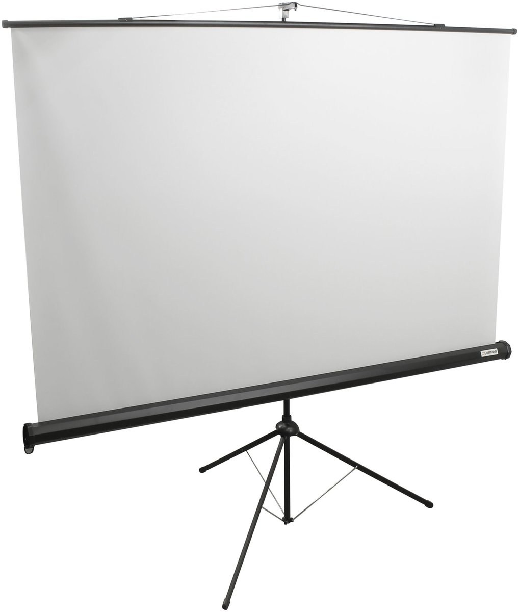 Возможности и преимущества этого экрана: полотно с обратной стороны имеет черное покрытие для предотвращения засветки изображения, специально разработанный кнопочный механизм раскрытия/сворачивания ножек штатива, телескопическая стойка, оснащенная регуляторами для выбора формата и высоты проекции, возможность легкого отсоединения штатива от корпуса экрана, удобная сбалансированная ручка для переноски, черный корпус и черная планка для улучшения восприятия яркости изображения.