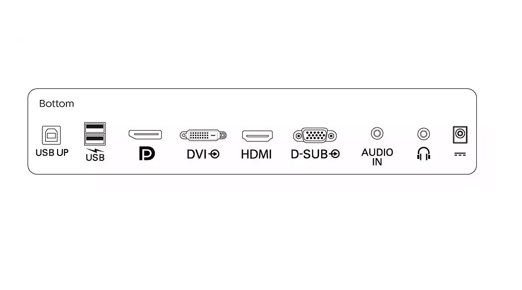 | Кабели | Кабель D-Sub, кабель HDMI, кабель DP, кабель USB-A на USB-B, аудиокабель, кабель питания |