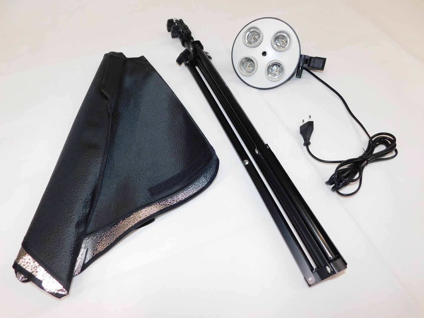 Комплект из 4-х софтбоксов 70х50 см для 4-х ламп с цоколем Е27. Их применяют в предметной фотосъемке, а также в съемках видеороликов (особенно популярны у блоггеров). Данный софтбокс обеспечивает мягкое рассеянное освещение. Освещение регулируется путем включения и выключения ламп (есть 2 выключателя). Снаружи на софтбокс одевается просветный диффузор, помогающий рассеить мягкий свет по всему объекту съёмки. Экран для создания рассеянного света в комлекте.