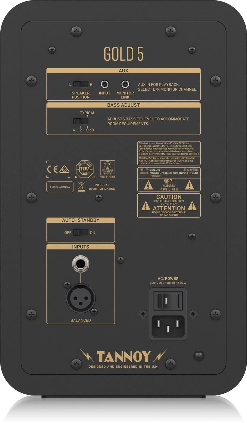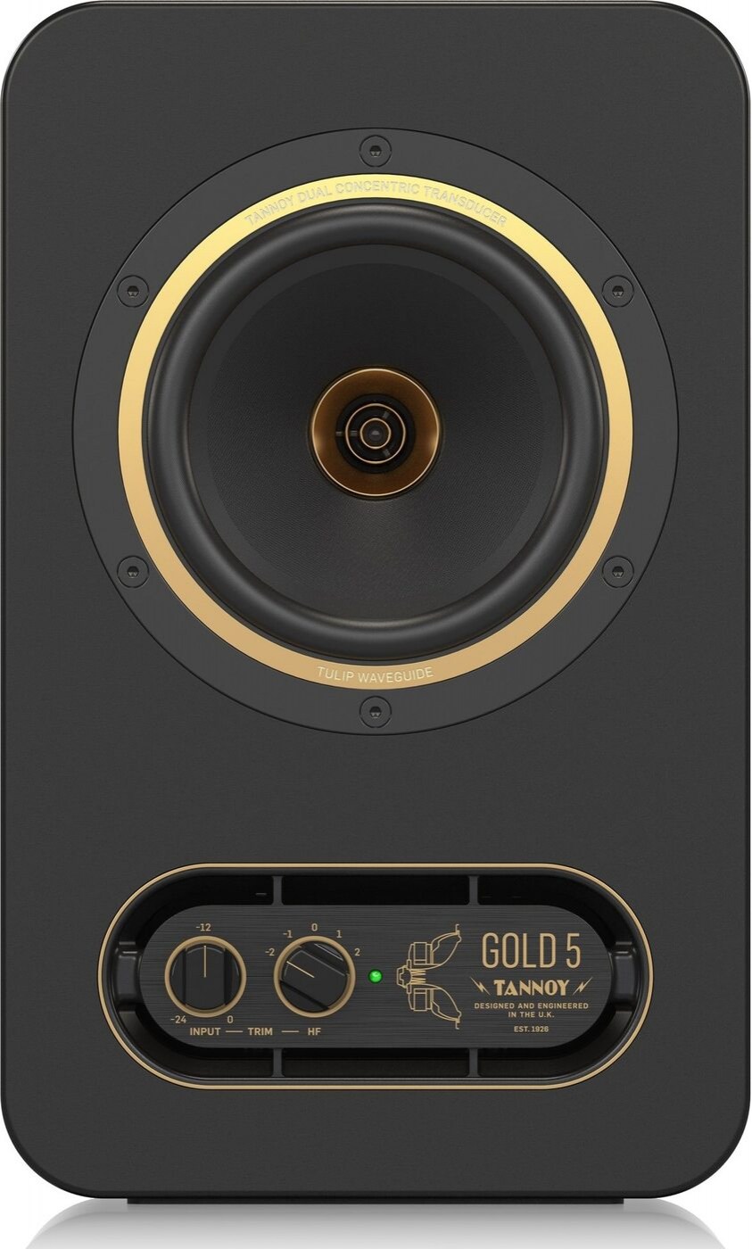 Tannoy Gold 5 - референсный активный студийный монитор ближнего поля, разработанный для точного неокрашенного воспроизведения звука и обеспечивающий выдающуюся четкость звучания. Точный и нейтральный звук не утомляет звукоинженера и позволяет проводить более долгие сессии. В мониторе установлен 5” динамик нового поколения, превосходно передающий все оттенки громкости и обладающий великолепной музыкальной артикуляцией. Двойная концентрическая технология обеспечивает фазовую когерентность и исходящую из точечного источника звуковую картину. Порт фазоинвертора на передней стенке позволяет располагать монитор близко к стене и оптимизирует воспроизведение низких частот. Титановый 0,75” твиттер с тюльпанообразым волноводом обеспечивает детальный стерео имидж и расширяет благоприятное для прослушивания пространство. Двойной усилитель класса AB мощностью 200 Вт рассчитан на использование с установленными в мониторе трансдюсерами и раздельно усиливает низкие и высокие частоты, точно передавая динамику. Постоянно активные входы XLR и ¼” позволяют подключить к монитору два источника сигнала, а с помощью регуляторов можно подстроить звучание монитора под особенности помещения. Предусмотрена энергосберегающая система перевода монитора в режим ожидания.