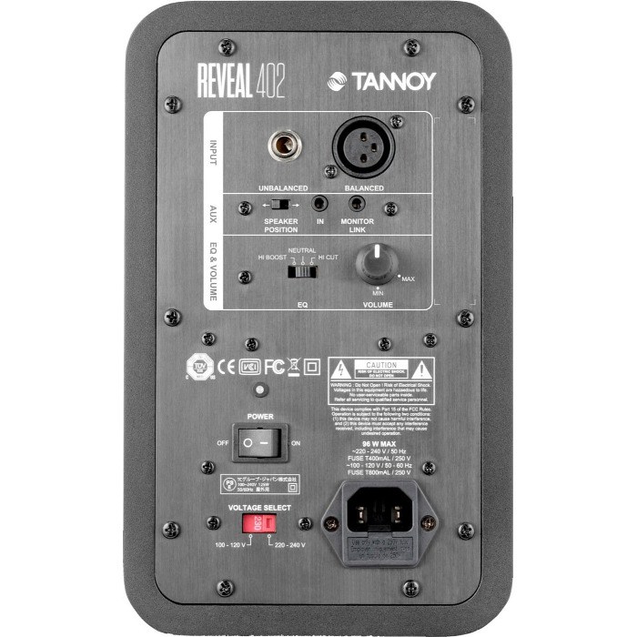 Tannoy Reveal 402 - студийные мониторы с амечательным интегрированный усилитель лишает вас всякой необходимости в отдельном решении. Они оптимизированы для использования на ближнем расстоянии - например, по краям вашего рабочего стола. Здесь имеется независимая регулировка уровня входного сигнала на обратной панели, а также регулировка высоких частот для отстройки мониторов под акустические свойства помещения. И пусть вас не обманывает компактный форм-фактор этих мониторов - 4-дюймовый НЧ динамик и 3/4-дюймовый ВЧ удивят вас массивностью своего звучания.