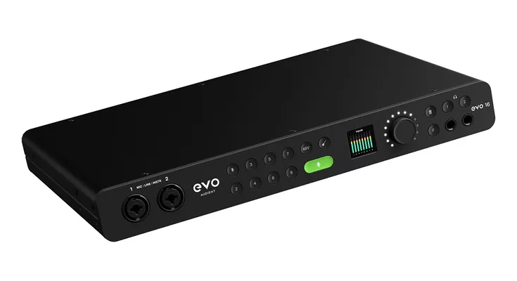 Audient EVO 16 - внешний USB-аудиоинтерфейс с 8 микрофонными предусилителями, 2 инструментальными входами, 8 линейными выходами, технологией автоматизации уровней Smartgain, 2 выходами на высокоомные наушники и пользовательским интерфейсом Motion.