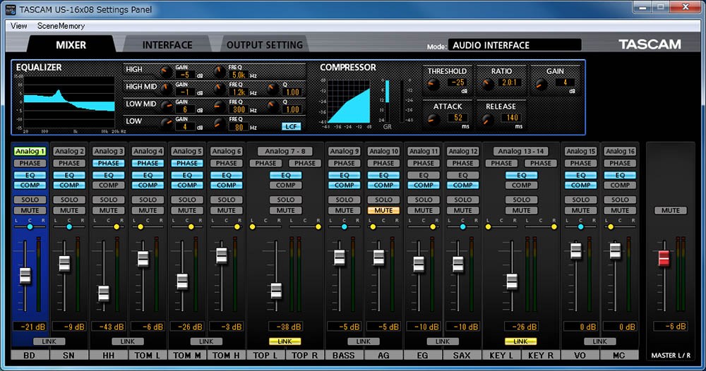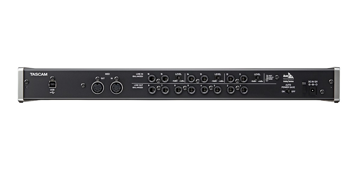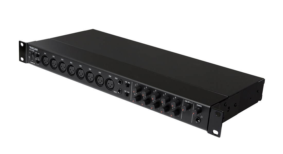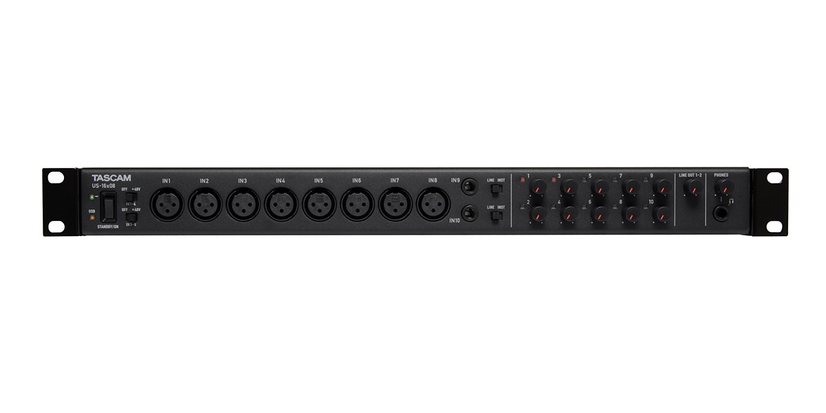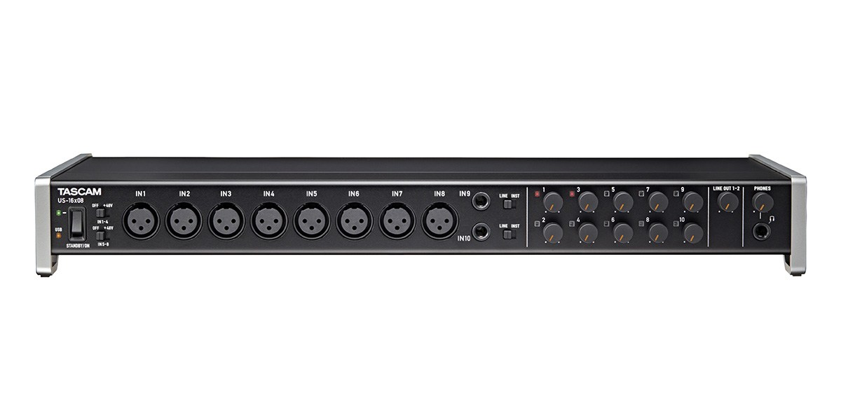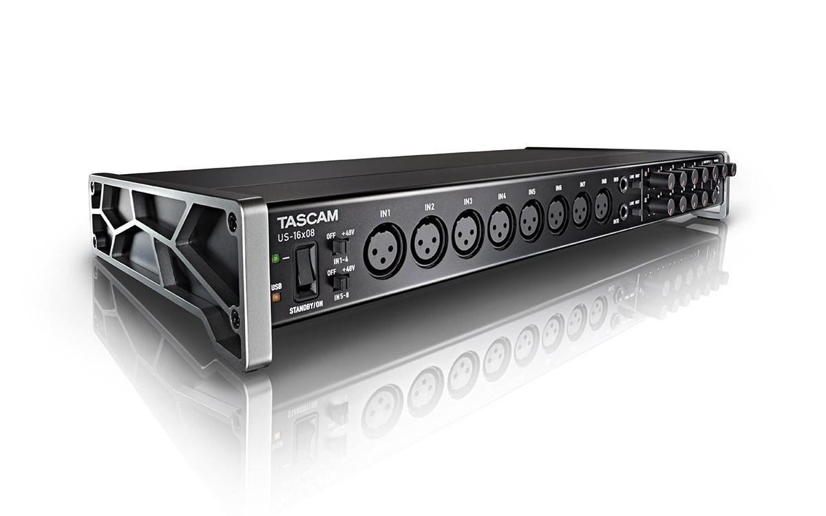 Tascam US-16x08 USB аудиоинтерфейс на 16 входов и 8 выходов с 8 микрофонными предусилителями, встроенным сигнальным процессором, предназначенным для сведения и входной обработкой (эквалайзер / компрессор).