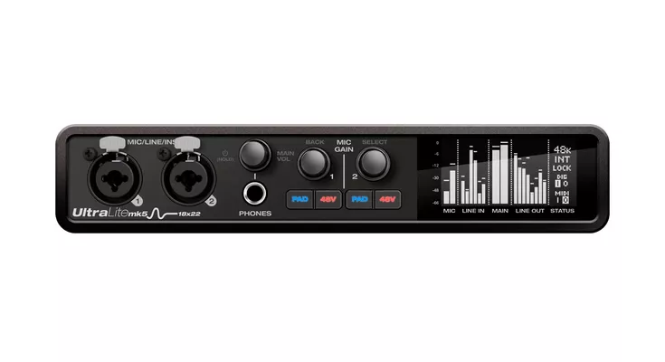 MOTU UltraLite-mk5 — аудиоинтерфейс USB-C на 18 входов/22 выхода с преобразованием 24 бит/192 кГц, 2 микрофонными предусилителями, микшированием и эффектами DSP, входом/выходом MIDI и обратной связью. Совместим с Mac/PC/iOS.