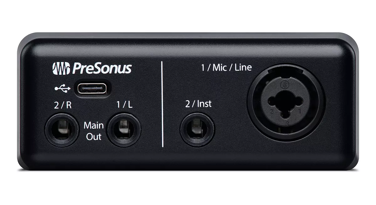 Комбинированный микрофонный/линейный вход с разъемом XLR-Jack TRS 1/4" оснащен фирменным предусилителем XMAX-L, для которого характерны низкий уровень шума и большой запас по усилению. Для подключения конденсаторных микрофонов предусмотрена функция фантомного питания 48В. Инструментальный вход с разъемом Jack TS 1/4" предназначен для подключения инструментов (например электрогитар или бас-гитар) не оборудованных встроенными предусилителями. Оба входа имеют независимые ручки уровня чувствительности и светодиодные индикаторы перегрузки сигнала. Для подключения пары студийных мониторов на задней панели расположен стерео выход с двумя разъемами Jack TRS 1/4". Выход для наушников здесь предоставлен разъемом Jack TRS 1/4". Основной выход и выход для наушников имеют независимые ручки громкости. Ручка MIX предназначена для мониторинга без задержки во время записи. Она задает соотношение сигнала с компьютера и прямого сигнала, поступающего на входы. При работе по шине USB Type C с компьютерами аудиоинтерфейс не требует дополнительного источника питания.