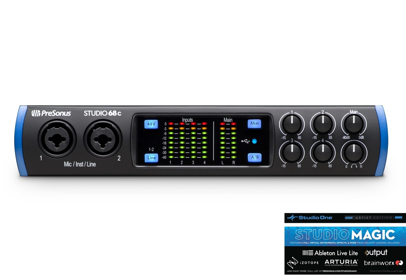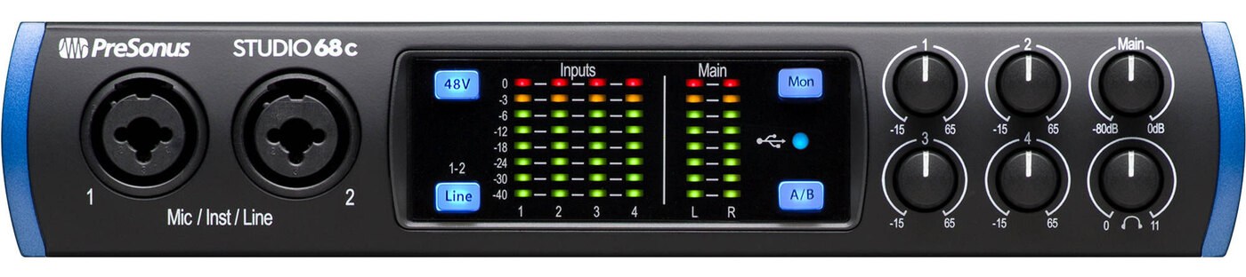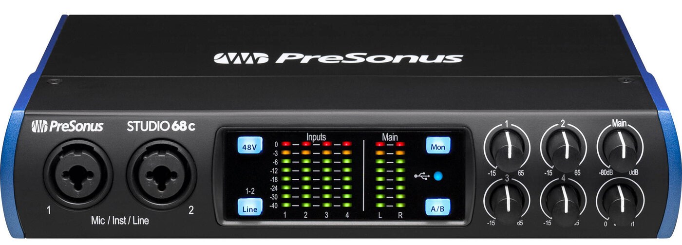 PreSonus Studio 68c - аудио интерфейс безупречно подходит для небольших коллективов, продюсеров, небольших и средних размеров студий. Для получения высокого качества записи используются 24-битные конвертеры с частотой до 192 кГц. Studio 68C снабжен 2-мя микрофонными / линейными / инструментальными входами на передней панели, PreSonus® XMAX микрофонными предусилителями, двумя микрофонными / линейными входами, расположенными на задней панели, MIDI входом/выходом и линейными выходами. Полноценное решение для записи «all-in-one», Studio 68C поставляется с удостоенным наград программным обеспечением Studio One® Artist от PresSonus для macOS® и Windows®, а также необходимыми совместимыми кабелями для работы с большинством компьютеров.