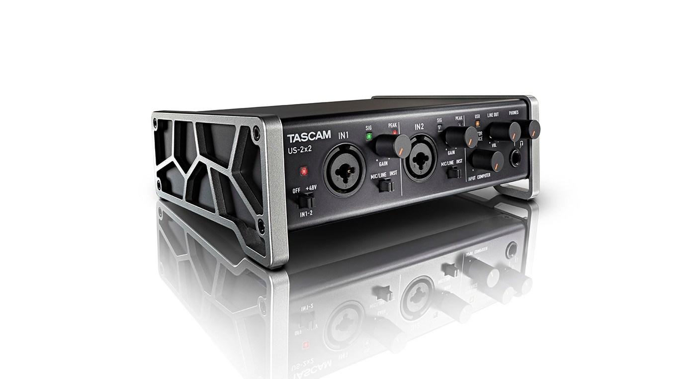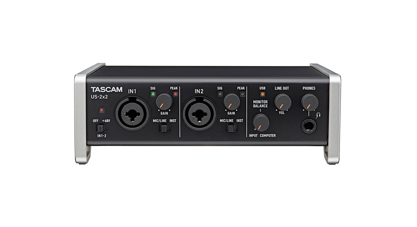 Tascam US-2x2 - USB звуковая карта на 2 входа/2 выхода с частотой дискретизации 24 бит/96 кГц, 2 комбинированными входами XLR/TRS, выходом на наушники, 2 балансными линейными выходами TRS и фантомным питанием. Совместима с Mac, ПК и iOS.