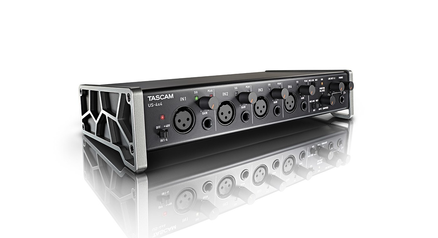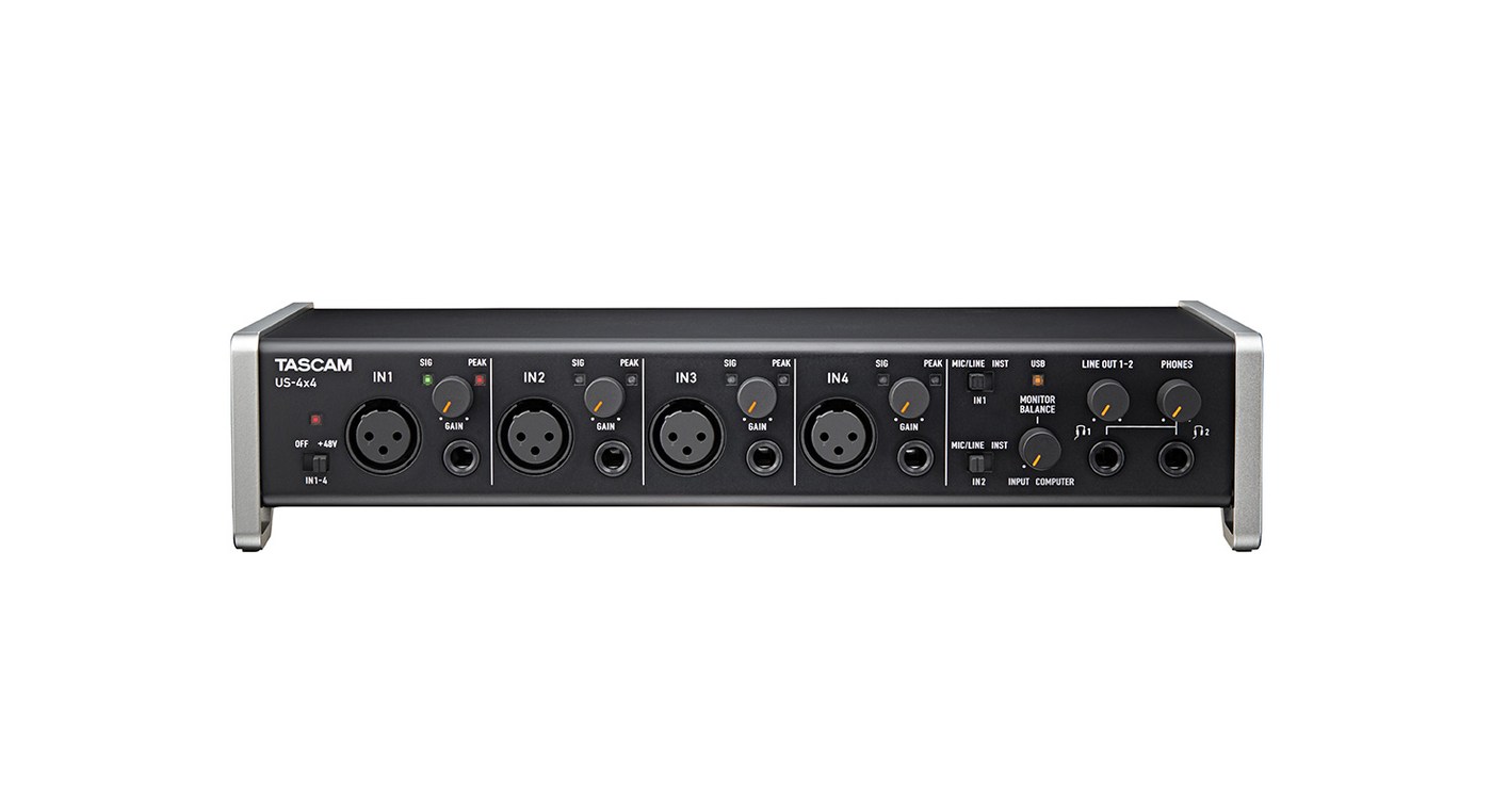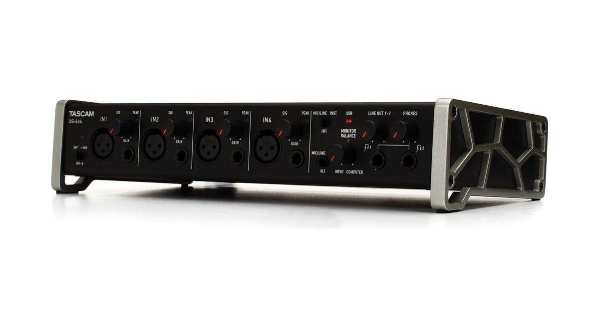 Tascam US-4x4 - USB звуковая карта, у которой 4 входа/4 выхода, частота дискретизации 24 бит/96 кГц. У нее имеется MIDI интерфейс, 4 канала (входы XLR и TRS), 2 выхода на наушники, 4 балансных линейных выхода TRS и фантомное питание. Данный аудиоинтерфейс совместима с Mac, ПК и iOS.