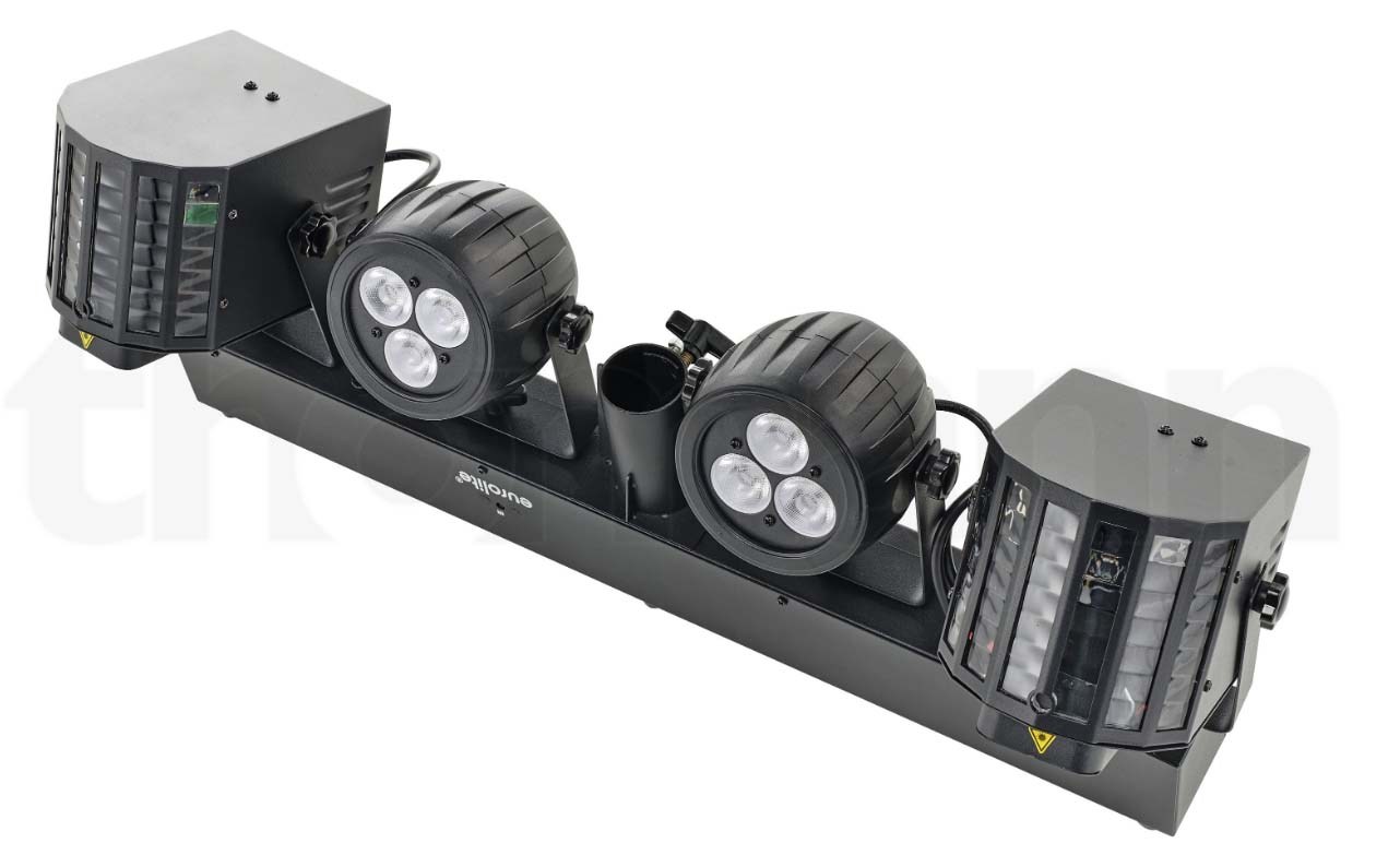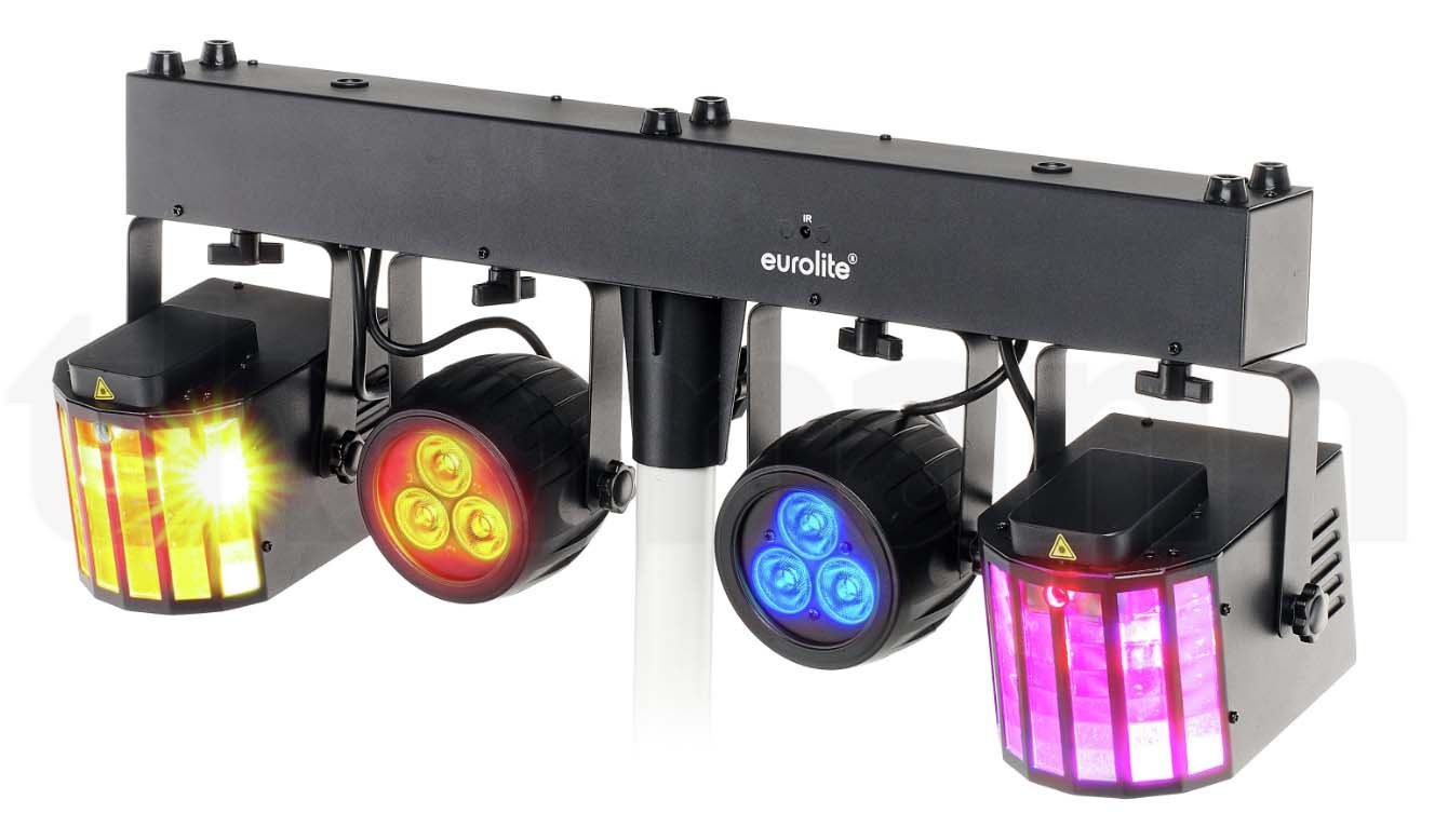 EUROLITE LED KLS-120 LASER FX II COMPACT LIGHT SET - панель световых эффектов DMX с 2 вращающимися светодиодными дерби, 2 светодиодными прожекторами и 2 лазерами (RG/2M)
