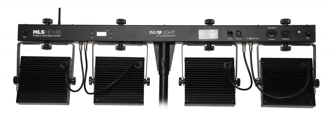 Мобильная, светодиодная световая установка Involight MLS HEX48 позволяет получить запоминающиеся световые эффекты, благодаря одному комплекту. Сет состоит из 4 х световых PAR прожекторов, установленных на перекладине. Каждый из 4 прожекторов нагружен 12 х RGBWA/UV-светодиодами, мощностью 12 Вт каждый.