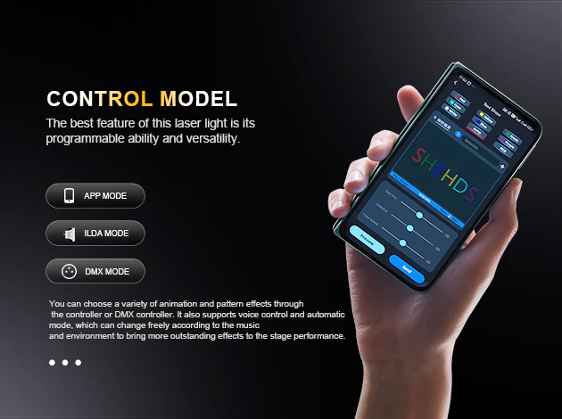 Особенность данного лазера — его программируемость и универсальность. Вы можете выбирать различные анимационные и узорные эффекты с помощью контроллера или DMX-контроллера. Кроме того, он поддерживает звуковой режим и автоматический режим, которые можно с легкостью менять в зависимости от музыки и окружающей обстановки, чтобы добиться более впечатляющих эффектов на сцене.