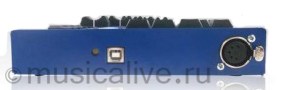 На обратной панели Вы найдете один DMX-выход, созданный без ограничений по патчу. Подключение к персональному компьютеру реализовано через станадартный USB-порт, который одновременно является источником питания, избавляя от необходимости задействовать дополнительные внешние адаптеры.